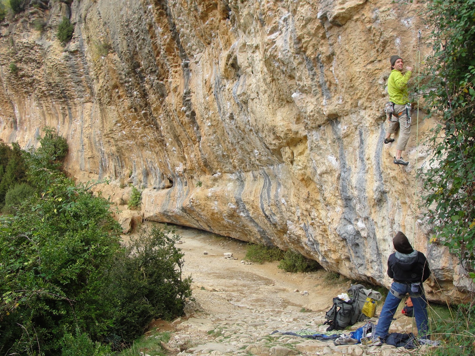 After a short uphill approach, we reached the Racos de les Tenebres sector and got out first taste of Margalef climbing. We warmed up on a couple of tweaky vertical 11's, and then moved down the hill to a steeper wall.
